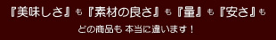 安心できる本当に『良いもの』を、味は もちろん『美味しいもの』を、サイズは しっかり『満足できる量』を、なのに価格は世間と比べ『かなり安く』。